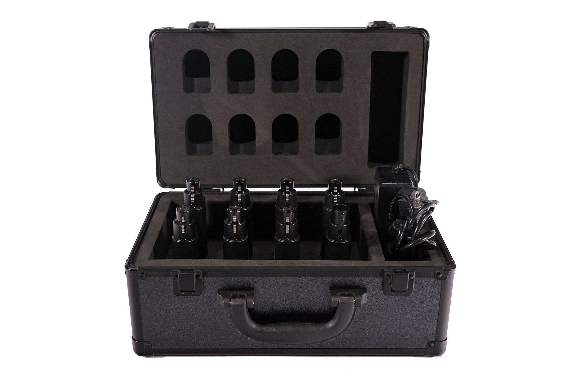 8-position charging case with fast charger plugs for the Airlink XLR TX and Airlink XLR RX.
