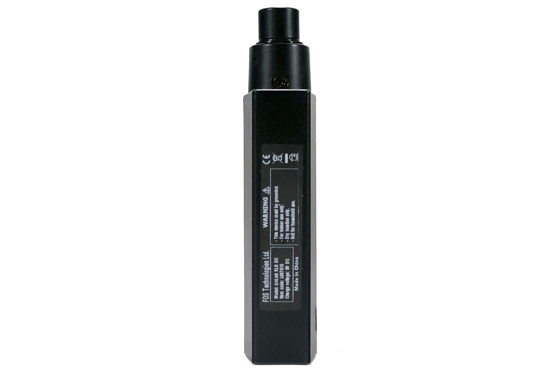 Wireless DMX receiver XLR with 2dBi antenna and working coverage 200 meters (open space), up to 50 hours battery operation time, compatible with all the FOS Airlink, battery charge time 3 hours, XLR connector for DMX and USB C and fast charging ports.