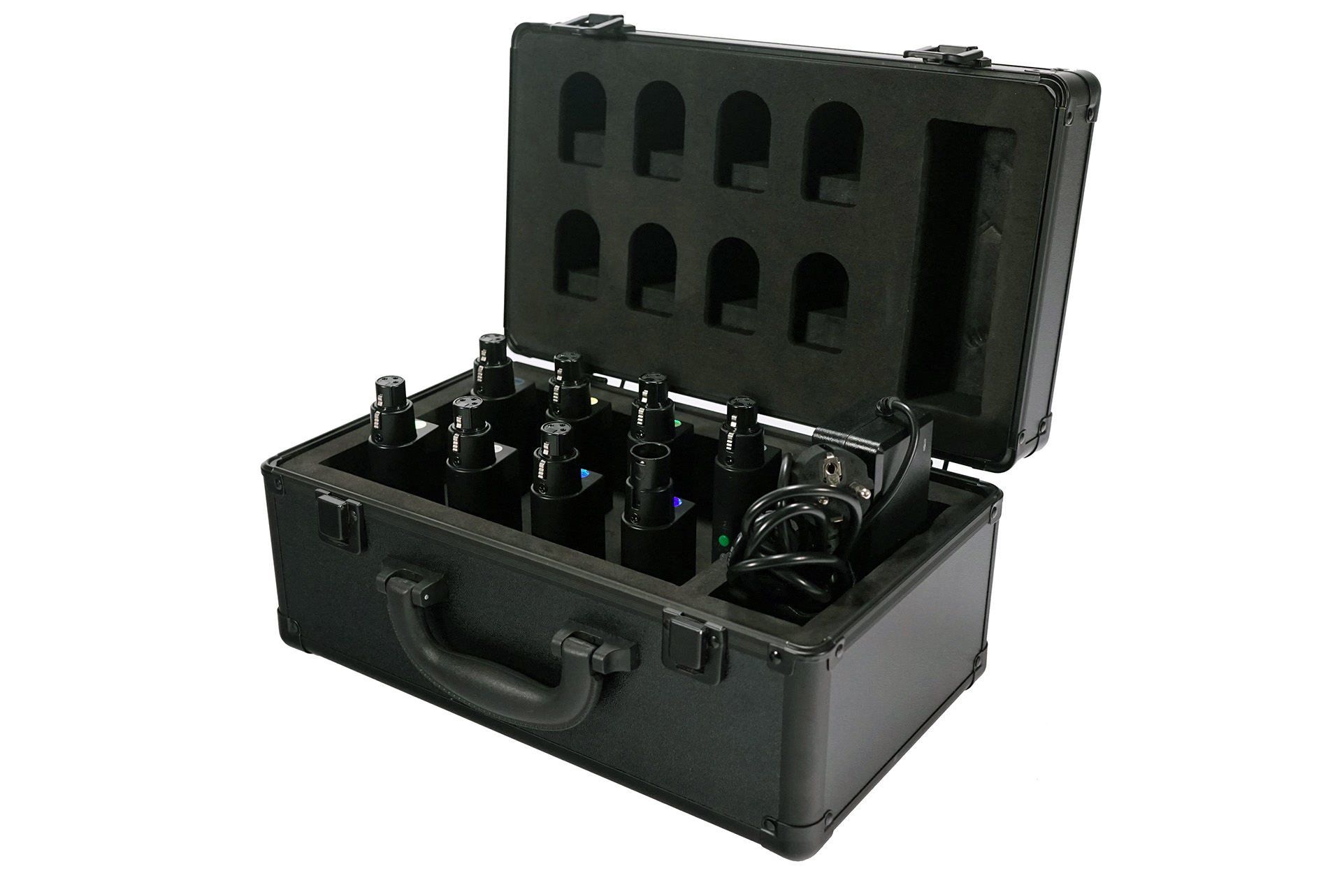 Airlink Wireless DMX set contains 7 pcs WDMX receivers, 1 pc WDMX Transmitter, and the 8-position fats charging case. All devices are compatible with our Airlink.