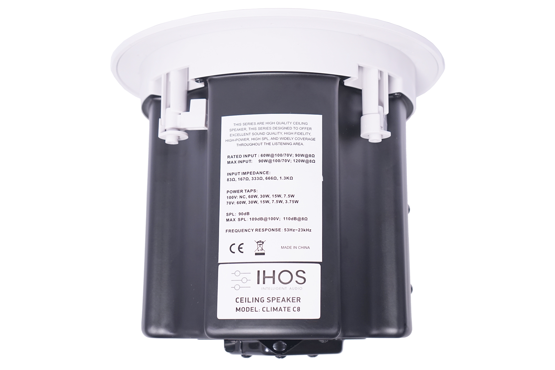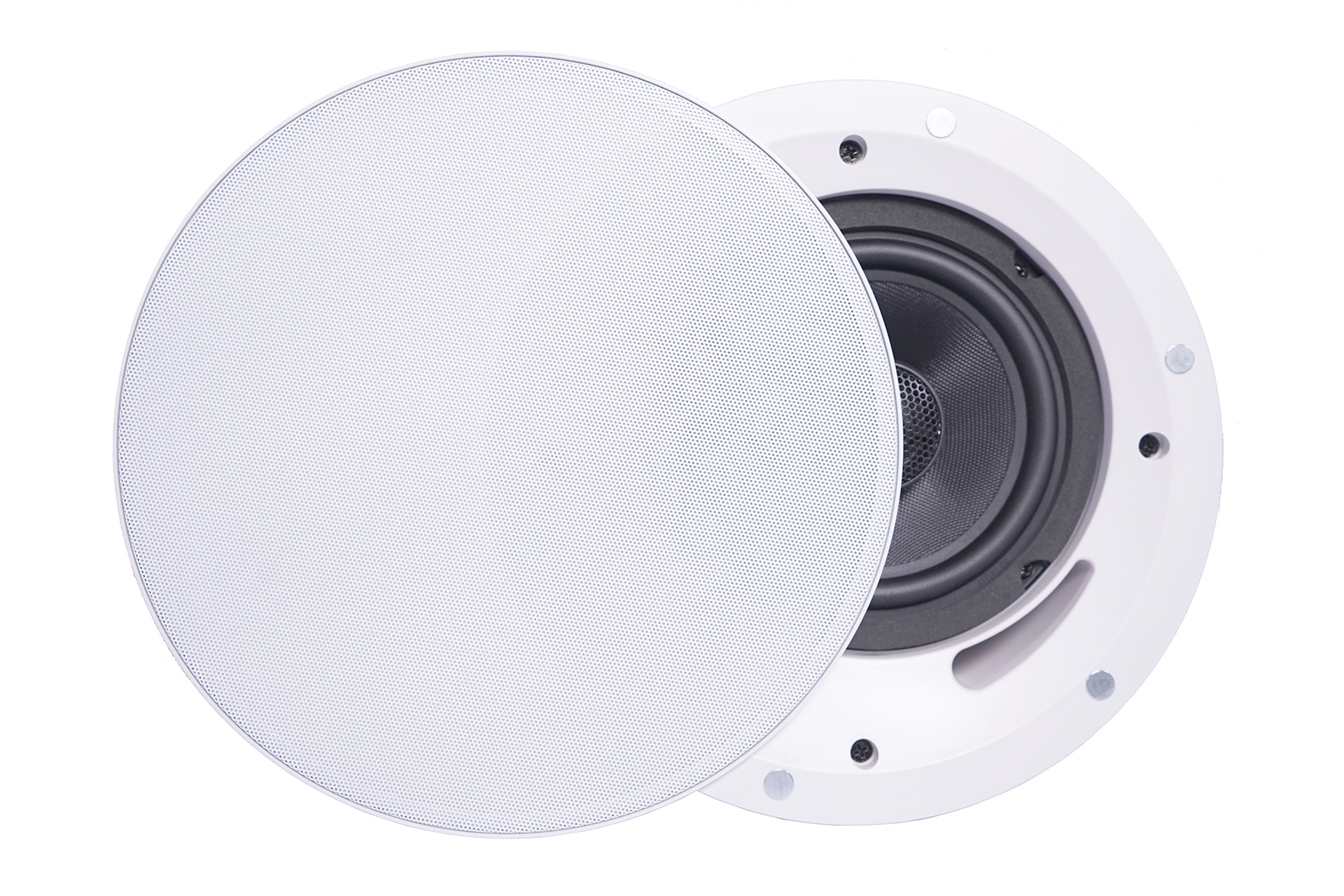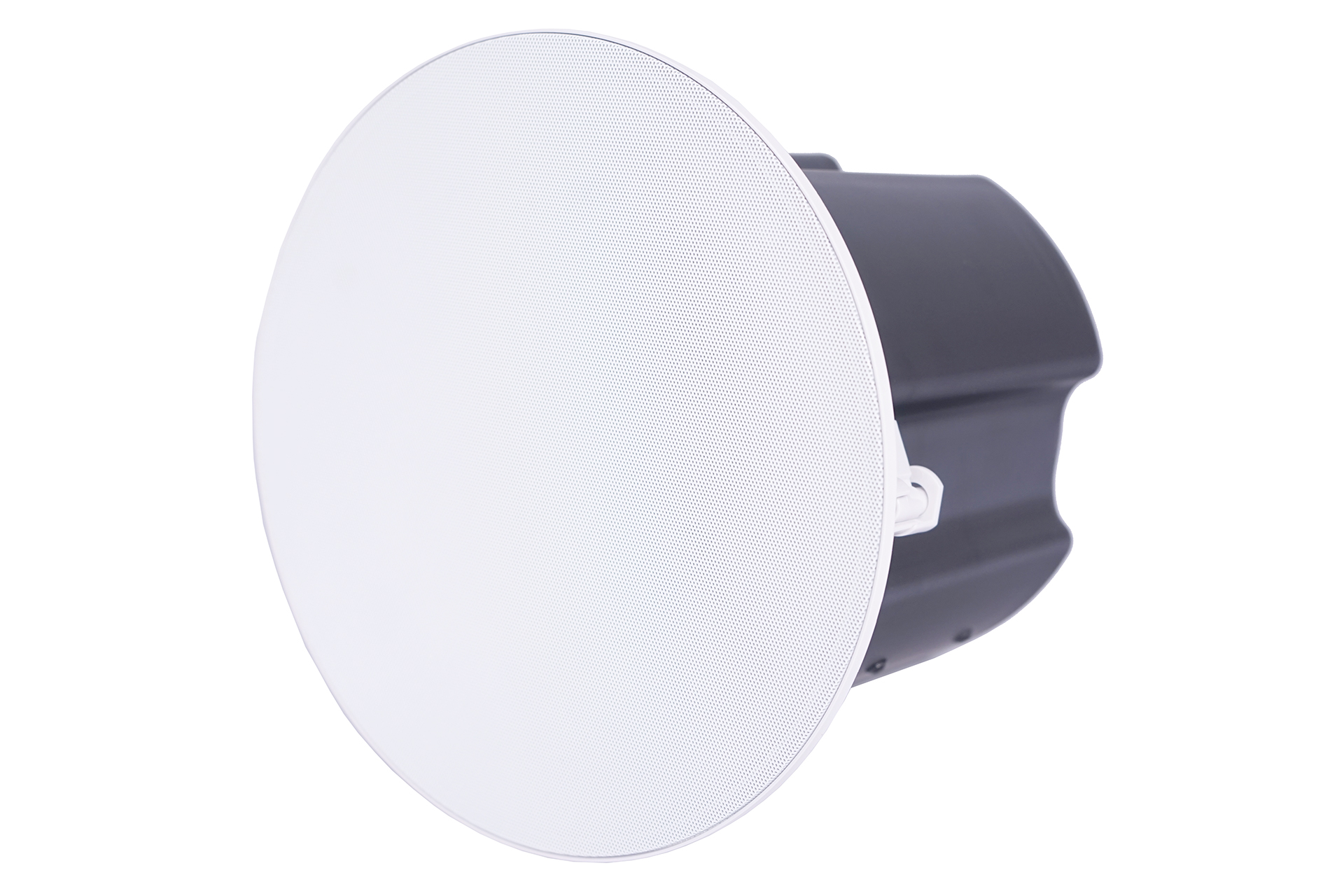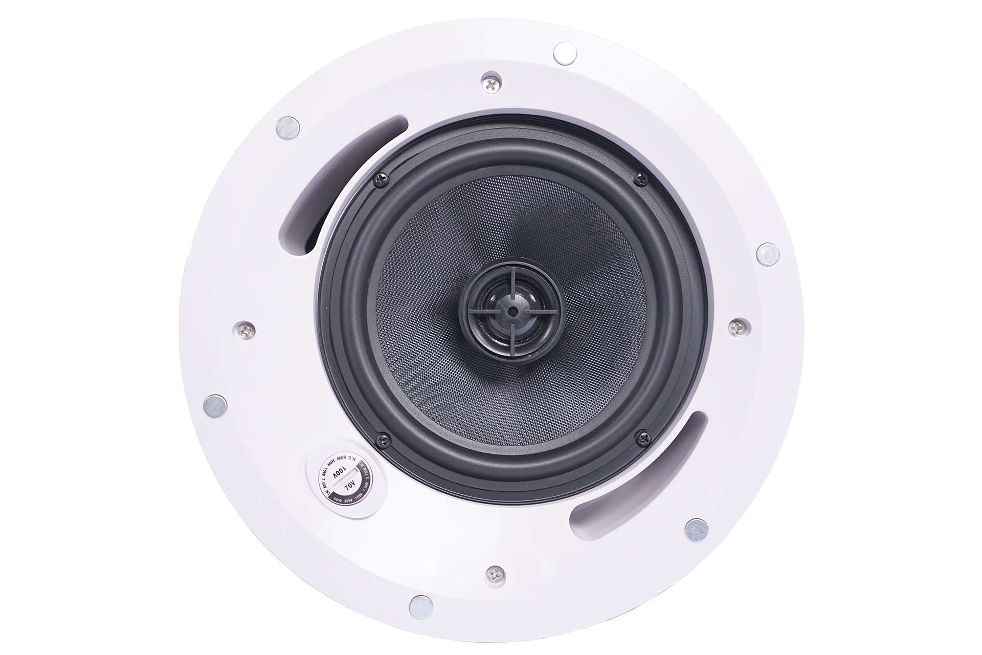 High quality ceiling speaker for pro audio and public address, 100/70V and 8� selecting switch, polypropylene woofer 6″, superior tweeter 1″, frequency response 53Hz -23kHz, 90 dB Spl, Hole size 230mm.