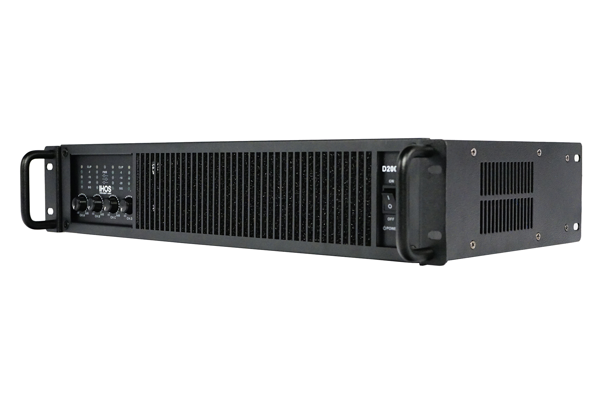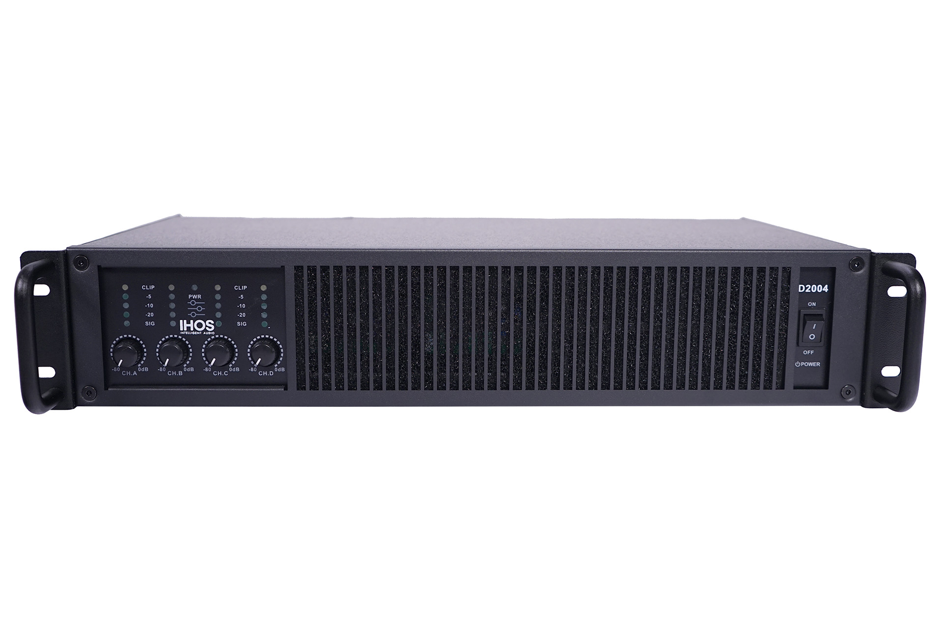 D class high performance 4 channels amplifier, 4 x400 w/8ohms , 4 x 640w/4 ohms, XLR input, speakon output, led VU meter, temperature control fans, frequency responce 20Hz – 34Kz,6kg.