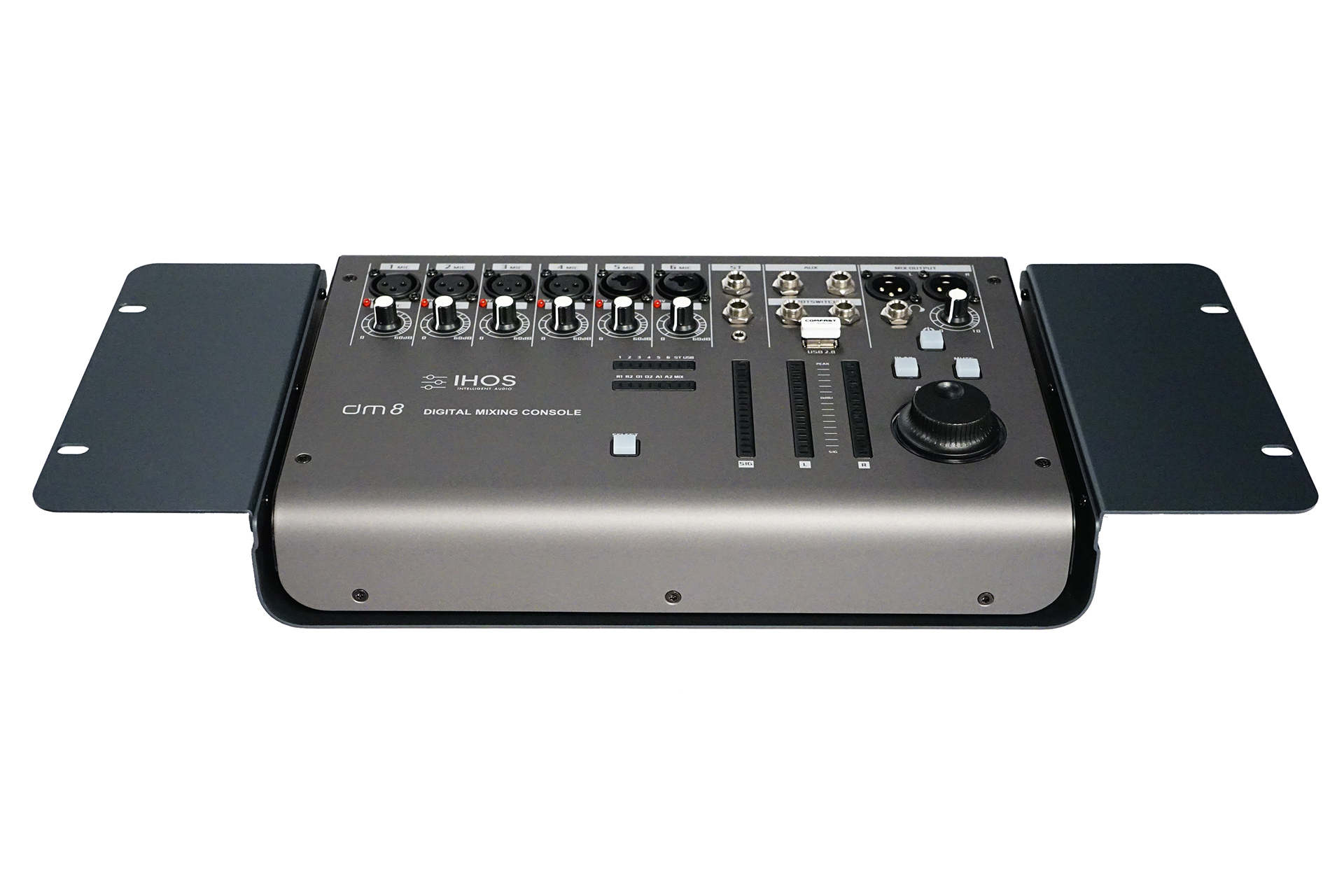 19-inch rack brackets for DM8 mixing console.