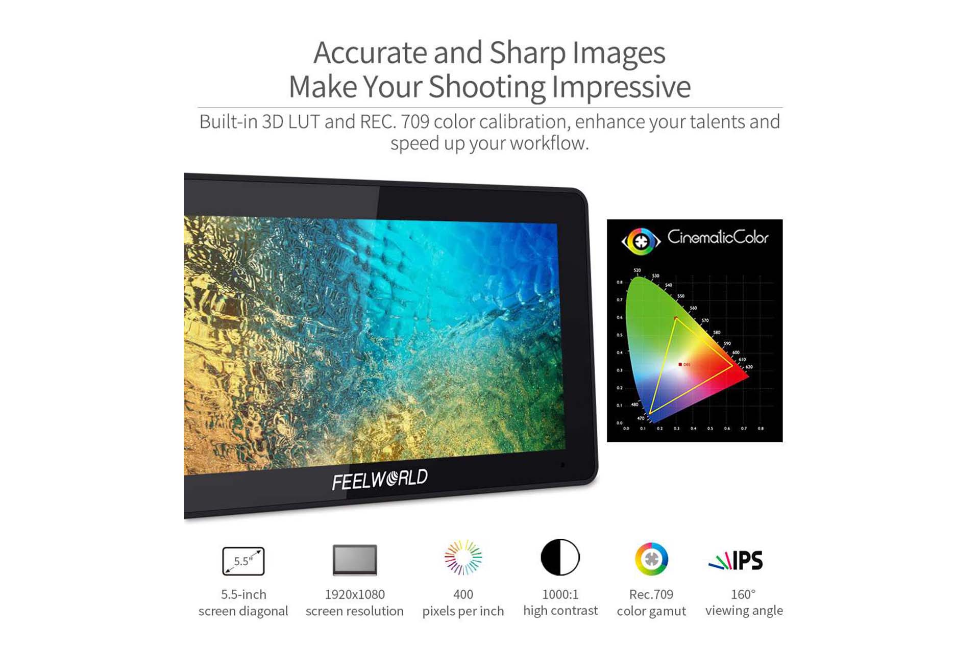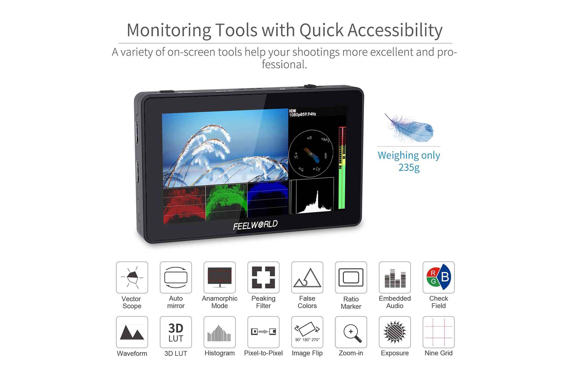 .5 inch DSLR Camera Field Touch Screen Monitor with HDR 3D Lut Small Full HD 1920×1080 IPS Video Peaking Focus Assist 4K HDMI 8.4V DC Input Output Include Tilt Arm