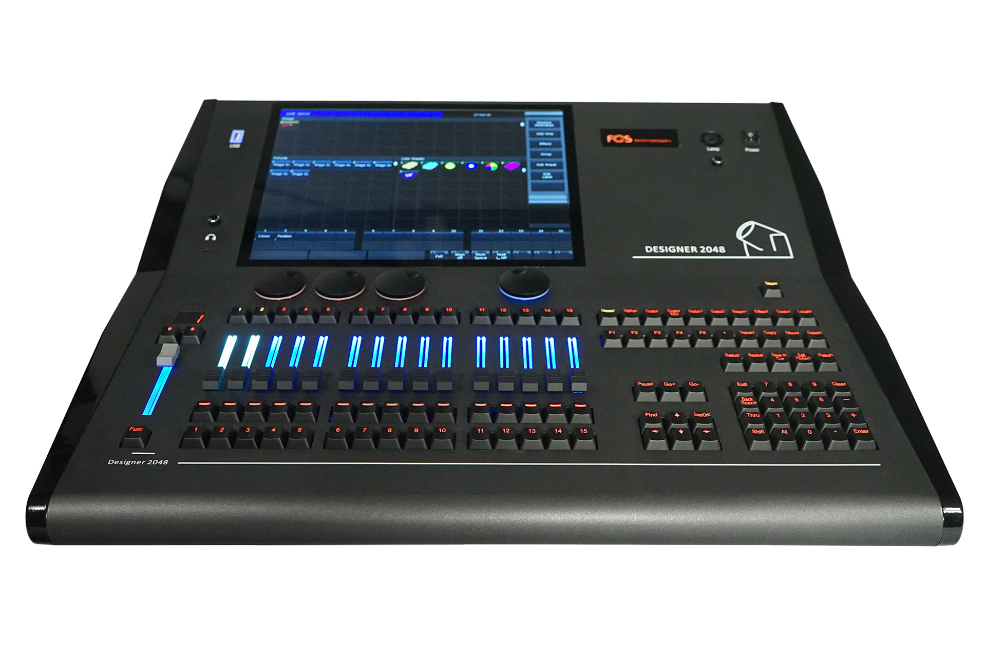 2048 channels (4096 ArtNET channels) Lighting Console, high-resolution 15 inches capacitive LCD touch screen, Art-Net, 15 playback faders and 15 playback keys, 4 backlit optical encoders, WiFi antenna provides WiFi signal for connecting App, backlit which can be set to 3 different colors, USB 2.0 interface allows you to backup shows, 15Kg.