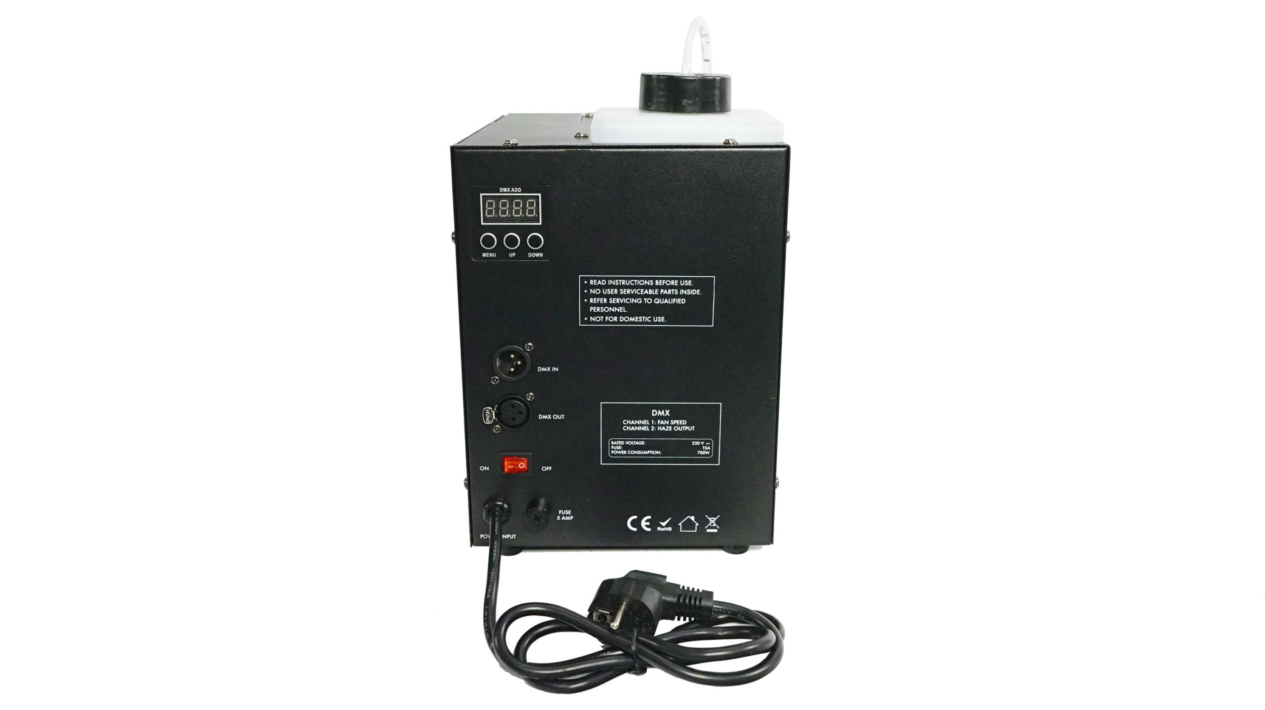 700 watt HAZE machine Very quiet but very strong fan integrated wind machine delivers 3500Cu ft/min , DMX controlled.