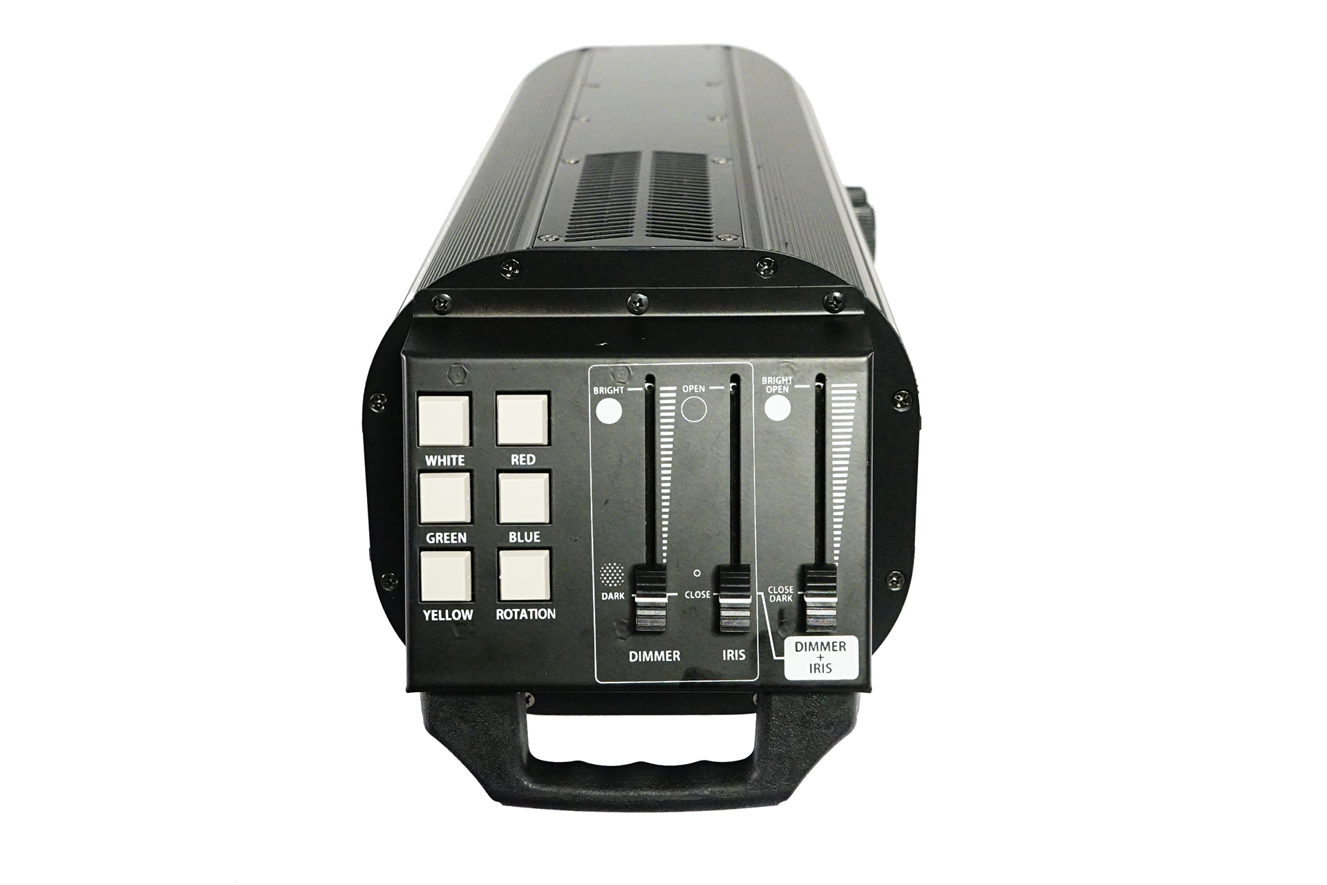 Professional Led Follow spot 150 watt, 10800lux@5m, Dimmer 0-100%, 4 colors, Iris 0-100%, beam angle 8-15, 3 faders (dimmer, Iris , dimmer-iris), manual control, 10.2kg.