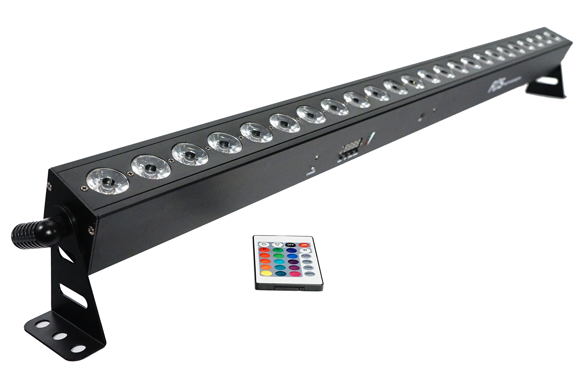 Battery operated led bar, 24×3 watt RGB 3in1 led, 25 degrees, 0-100 dimmer, pixel control, Lithium Ion battery, 12 hours single color operation, 103cm, powercon In/out.