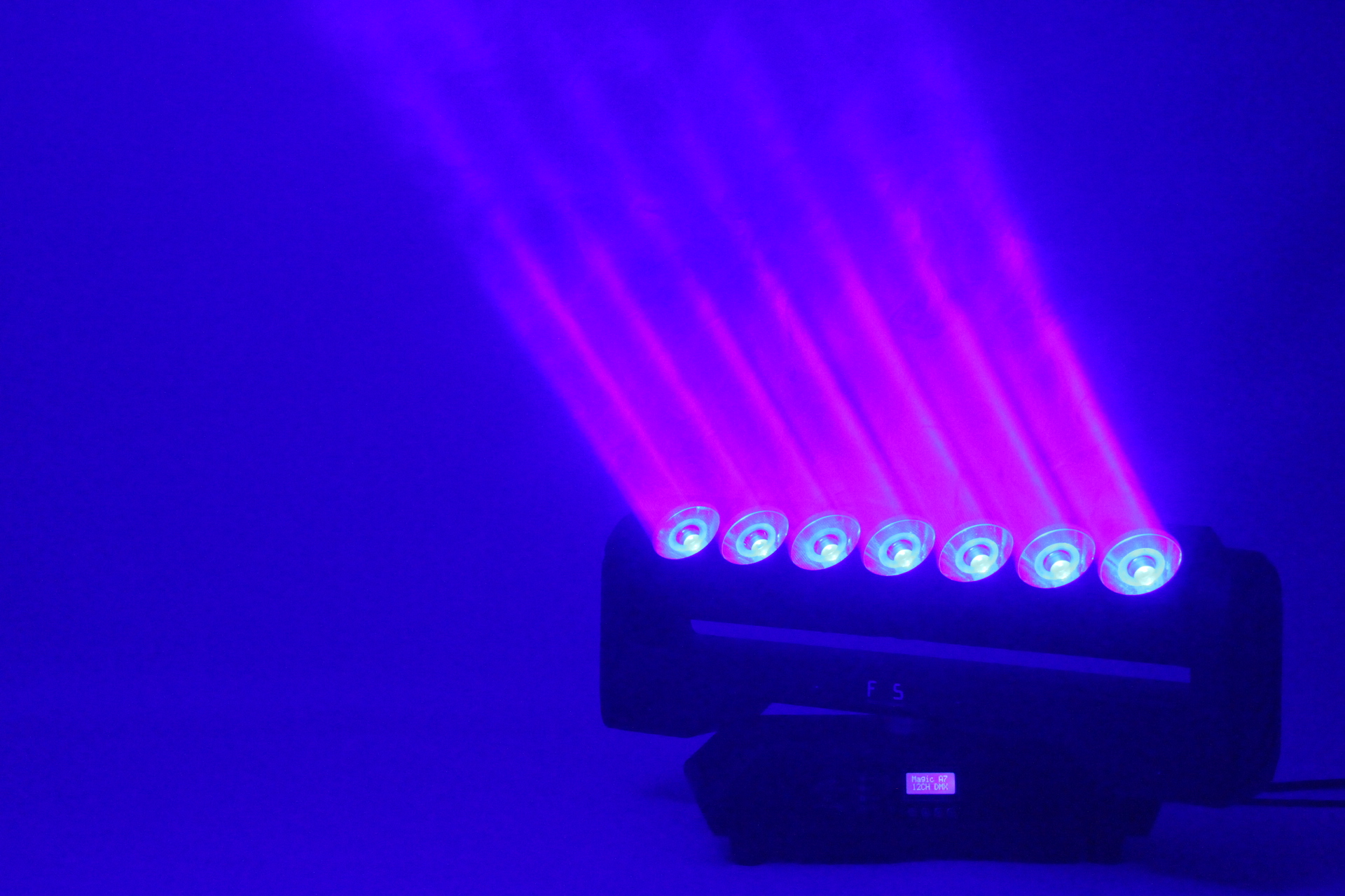Pixel Blade moving head with 7x15W 4in1 LEDs ultra bright,beam 4.5�,High-efficiency 67 mm PMMA optics , Dimmer: 0-100% .