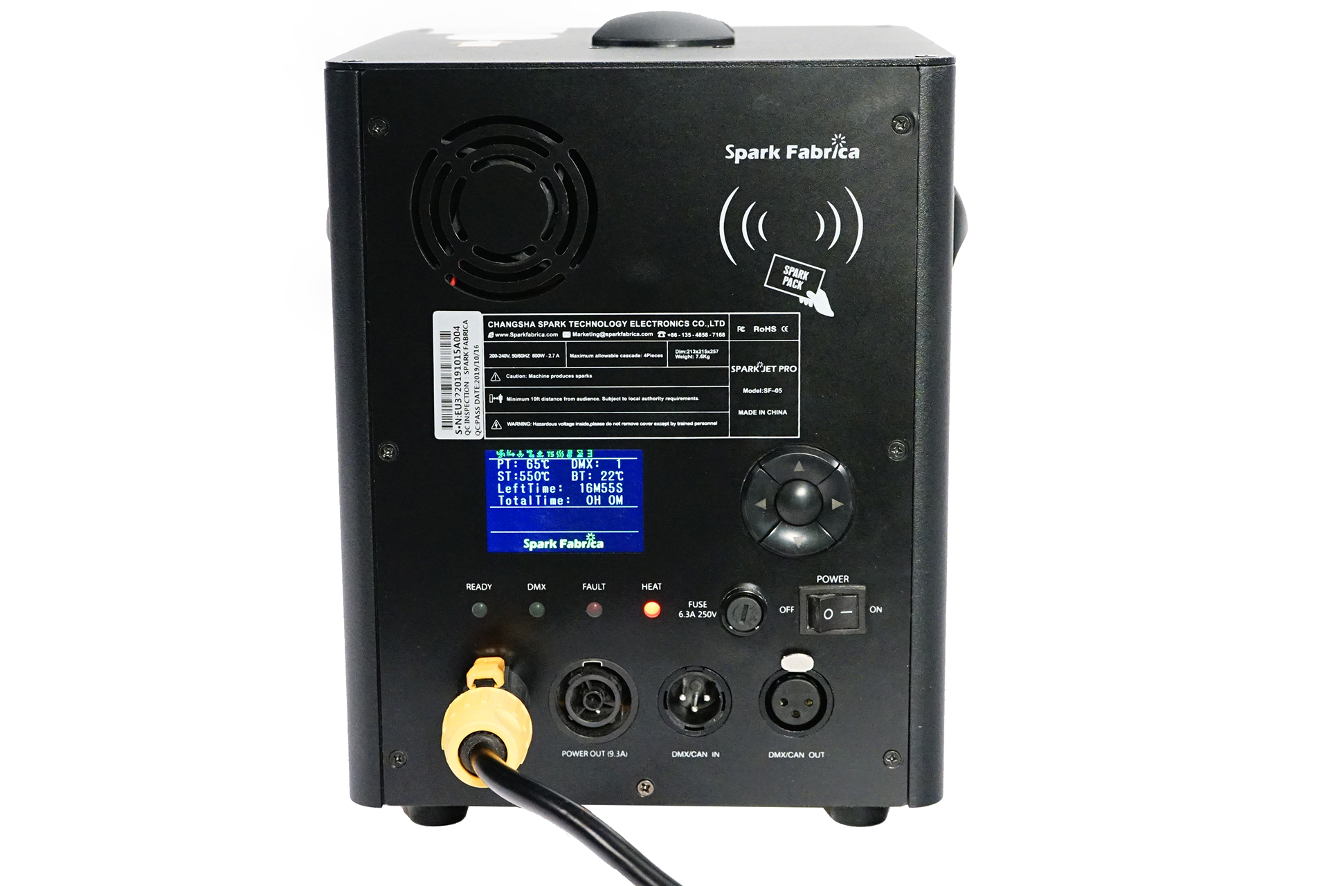 The best sparkle machine with RDM function and height adjustment channel! Adjustable Height 1.5-5M, Maximum Single Continuous Duration 30s, Heat Up Time 5 Minutes, seetronic connectors, consumption 20-25g/Minute.