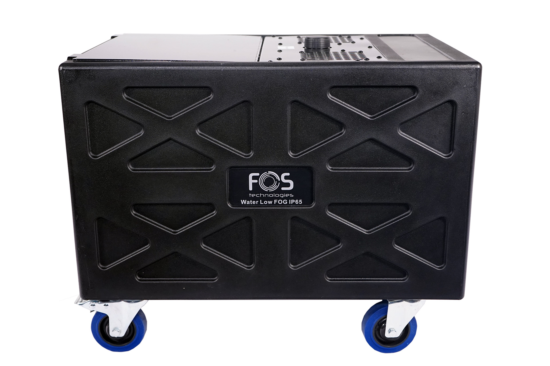 Weatherproof IP65 Low Fog 3000 watt smoke machine that needs only water fog liquid supply for 300 sqm stages, no need Co2 or Dry ice use ultrasonic technology. DMX 512, Remote Control LCD screen, heat up time 5 mins, fluid consumption 1-95ml/min, fluid-less and water-less protection, plastic and stainless construction, quick connect hoses, plastic nozzles, low noise operation, adjustable fog output, and fan speed.