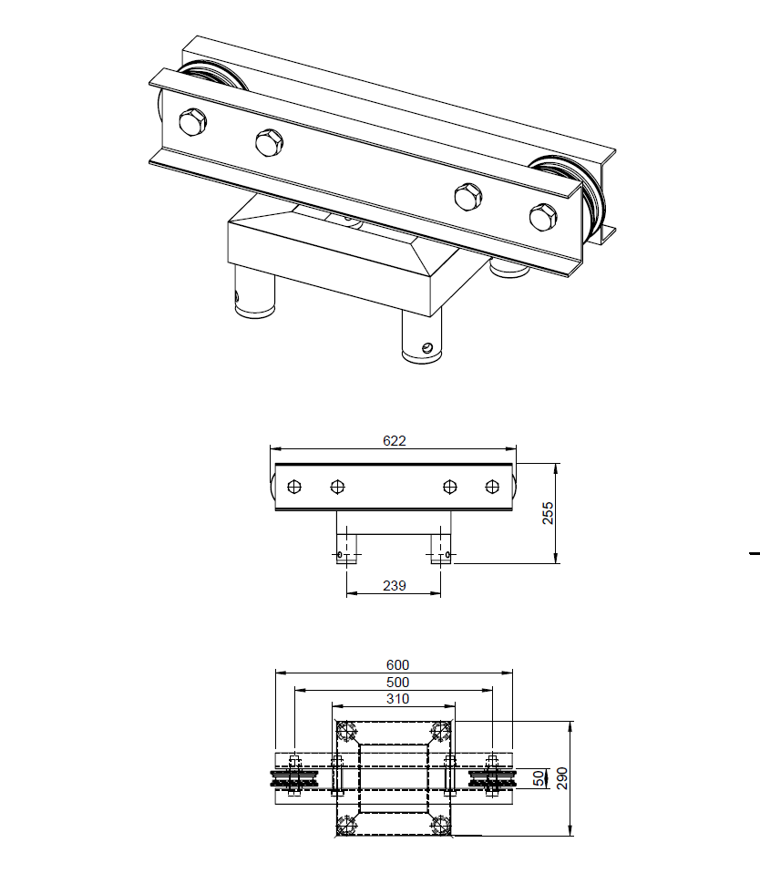 Tower Top for electric hoist black coated for the HT34 Tower.