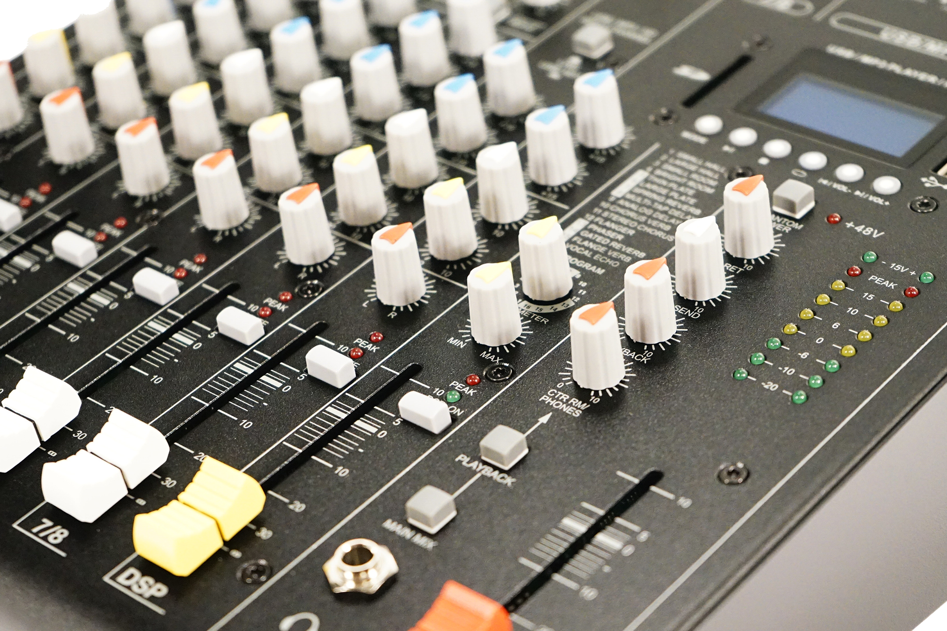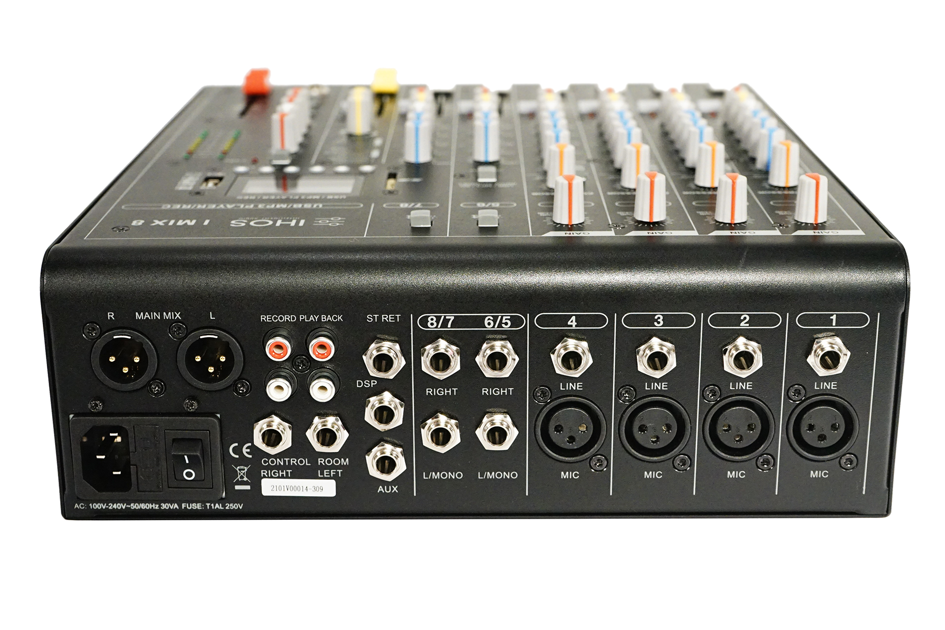 Compact, portable mixing console, 4 mono + 2 stereo input, 1bus, USB/SD Player and Bluetooth, A/D D/A converter sample freq .24-Bit,16 programs