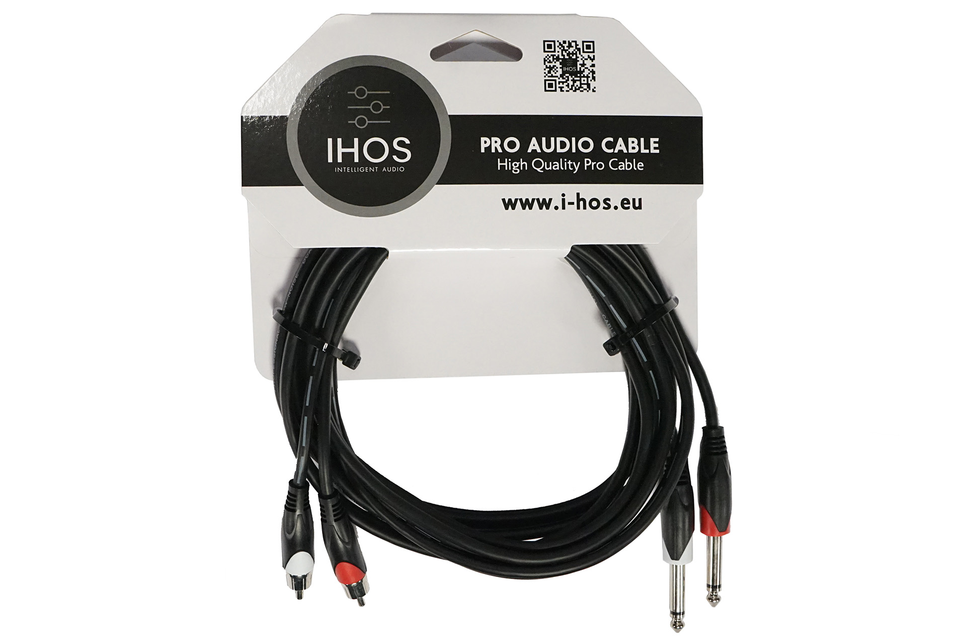 Audio cable, 2 x 6.3 mm Male jack to 2 x male RCA, Colour code: Red/ White, Length: 3m.