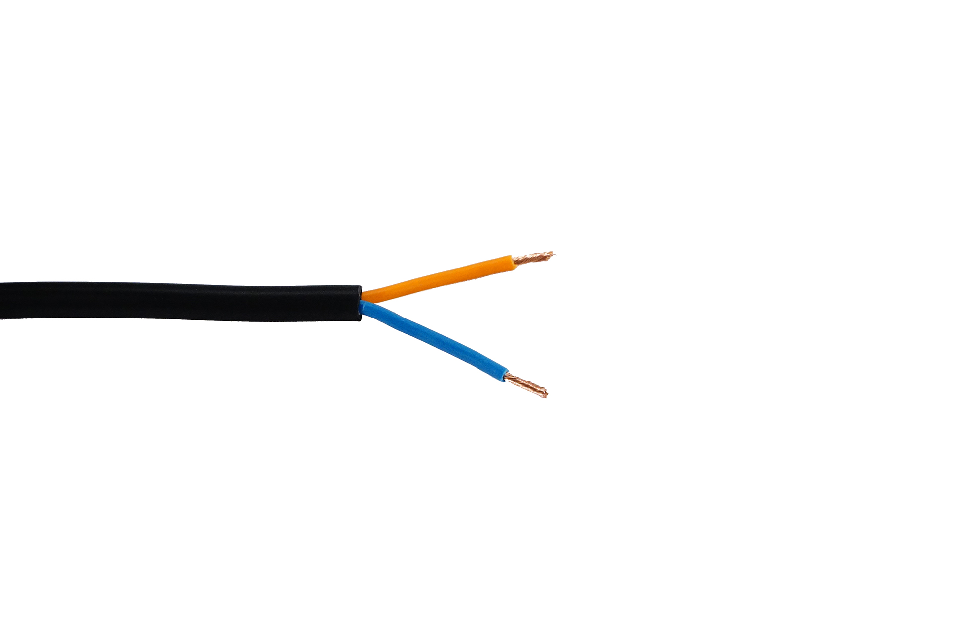 Professional speaker cable on reel, 100 meters black, 2×1.5mm inner conductor, blue/brown isolation, flexible pvc, outer dimensions 7mm.