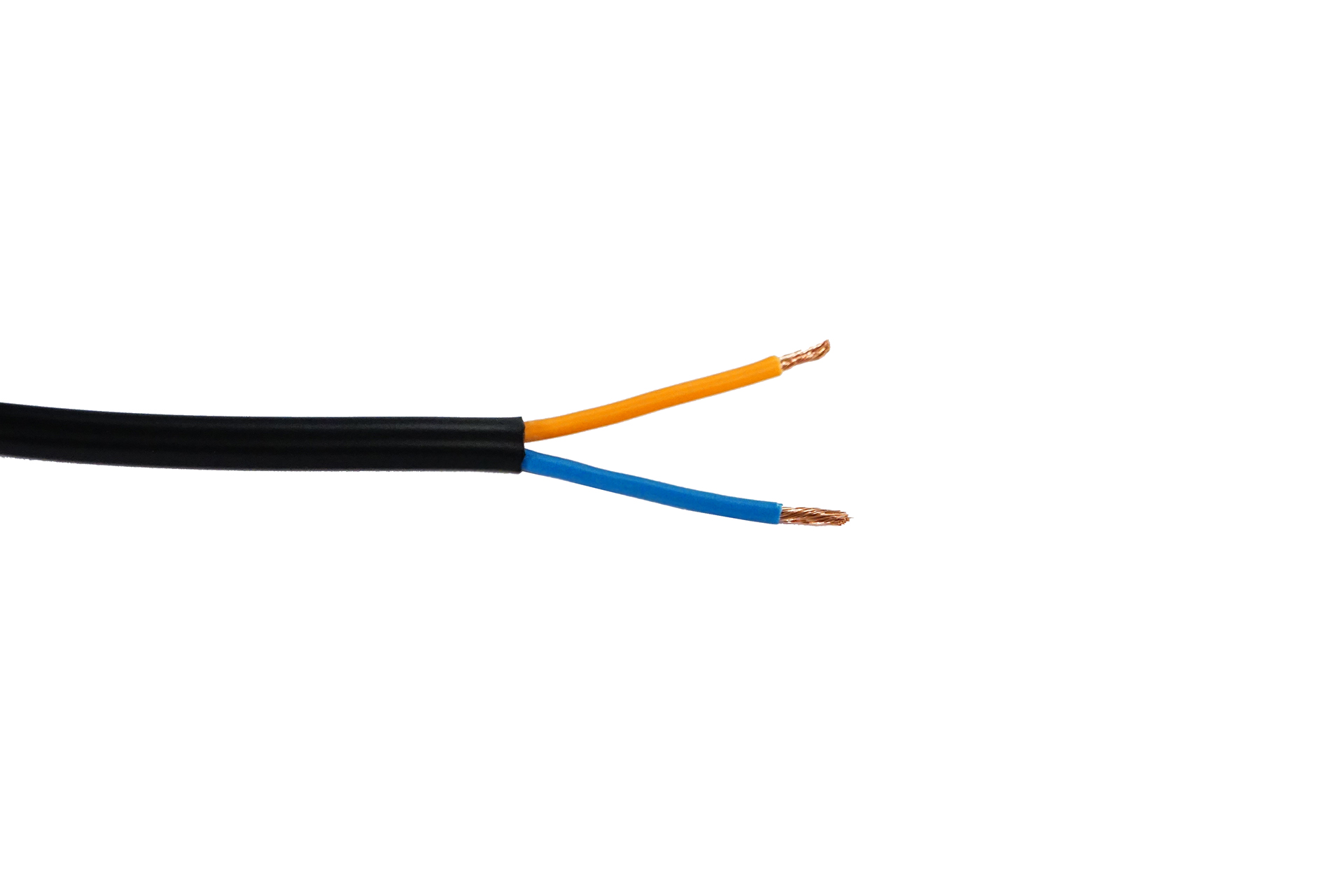 Professional speaker cable on reel, 100 meters black, 2×2.5mm inner conductor, blue/brown isolation, flexible pvc, outer dimensions 8mm.