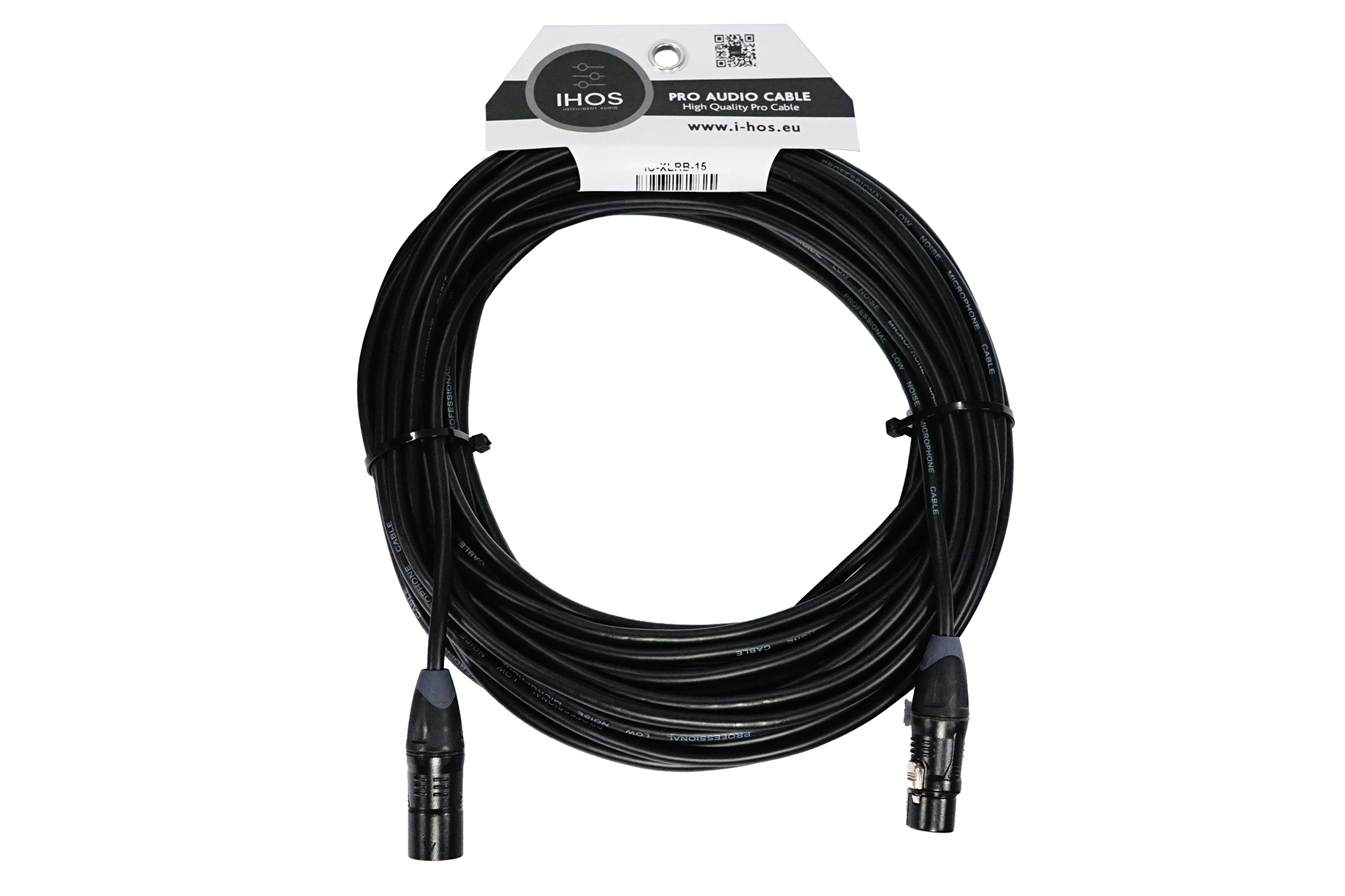 Professional XLR male to XLR female cable, nickel plated, high-quality signal transmission, soft PVC jacket, 60mm cable, flexible, black connectors, 15 meters,