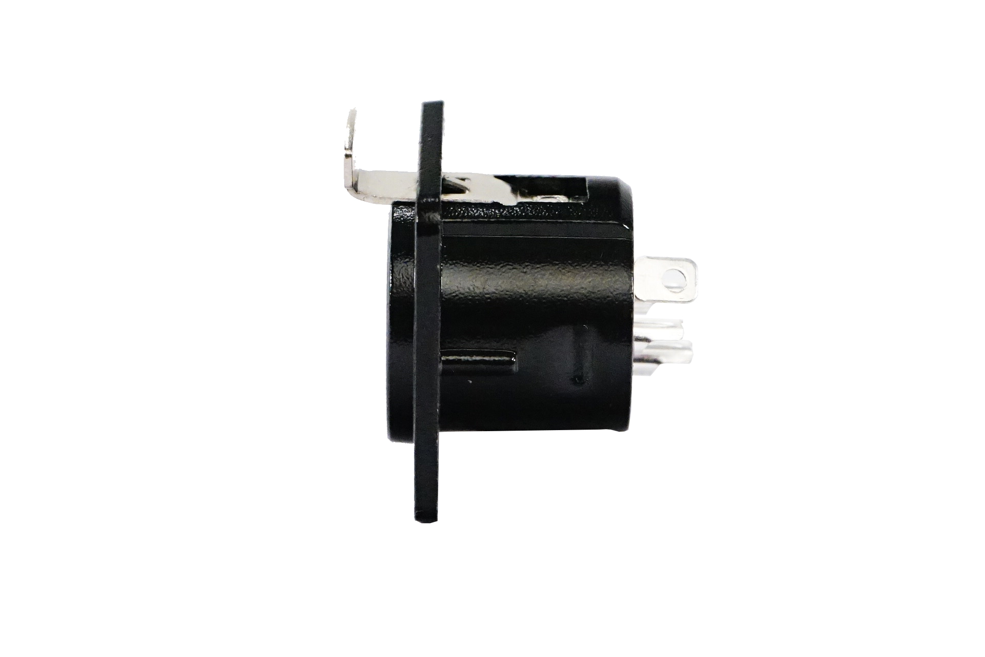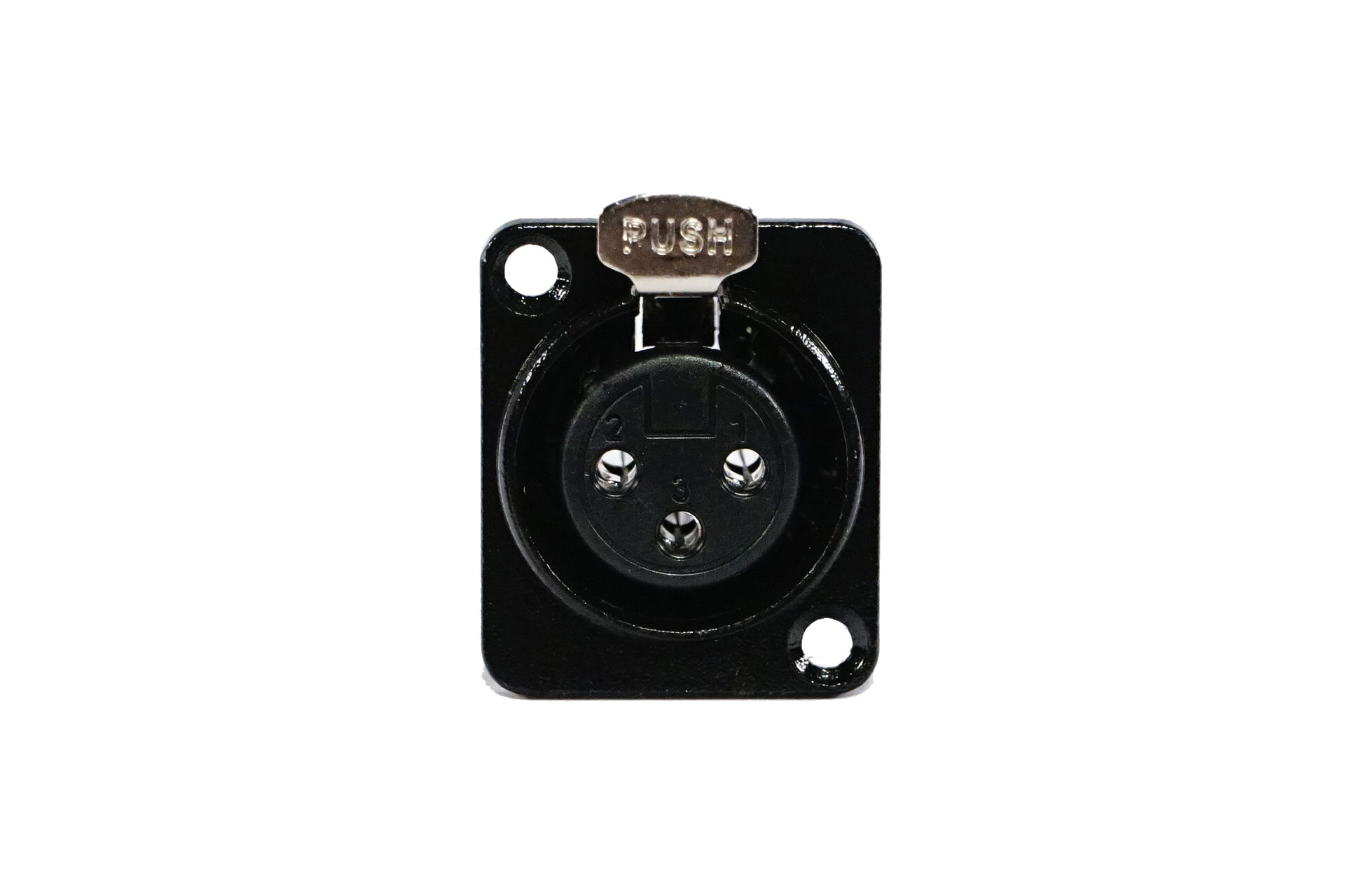Professional nickel plated XLR connector, black, female, installing hole size 19?24mm, dimension 26?31mm.