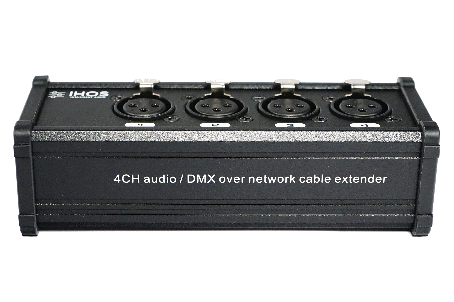 4CH over network cable extender, CAT5E cable can used to transmit audio signal, AES/EBU digital signal, DMX signal, female?RJ45, 4 x female XLR.