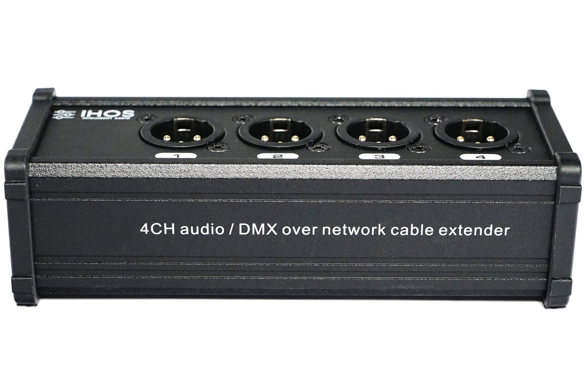 4CH over network cable extender, CAT5E cable can used to transmit audio signal, AES/EBU digital signal, DMX signal, female?RJ45, 4 x male XLR.