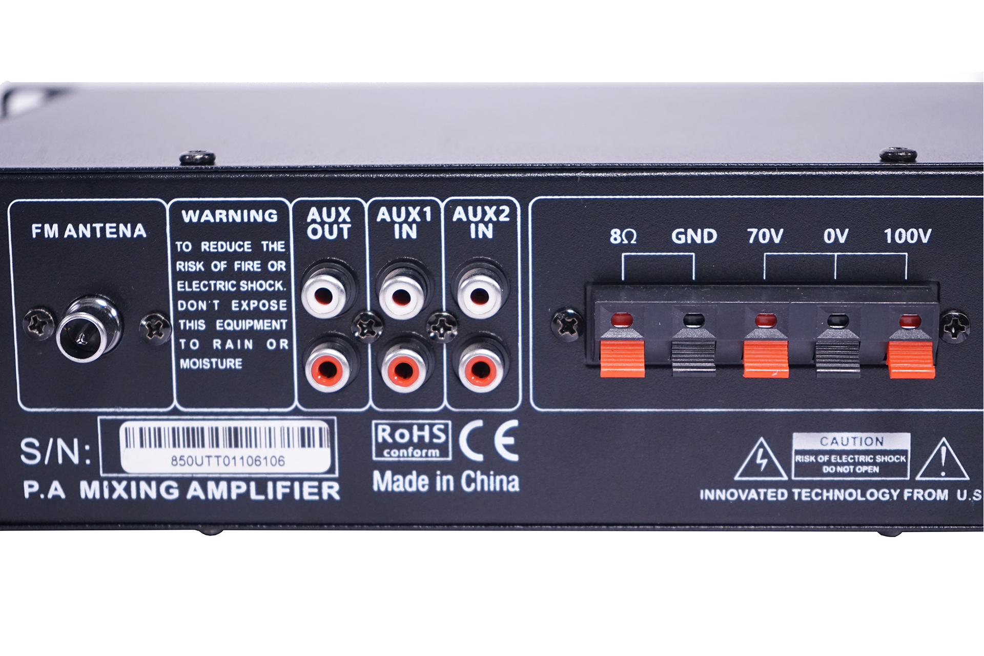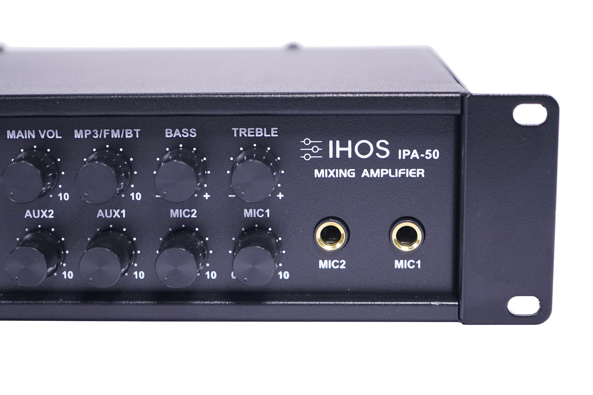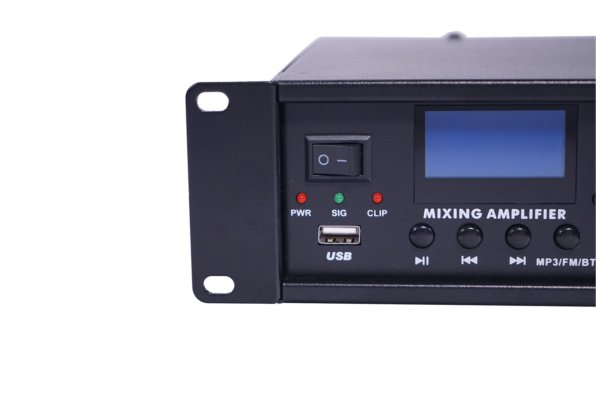 Public Address mixer amplifier 50 w , 100V / 70V constant voltage output, 8 ohm constant resistance output, mp3, bluetooth, FM tuner ,USB interface,LCD screen, 3 line input, 2 mic input, 1 line output.Treble and Bass,IR control function