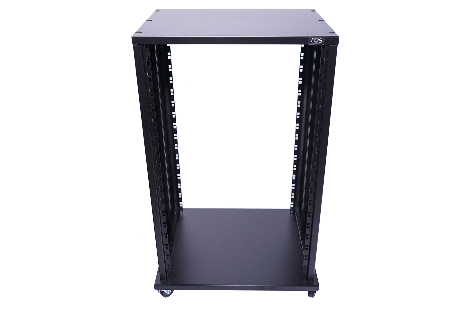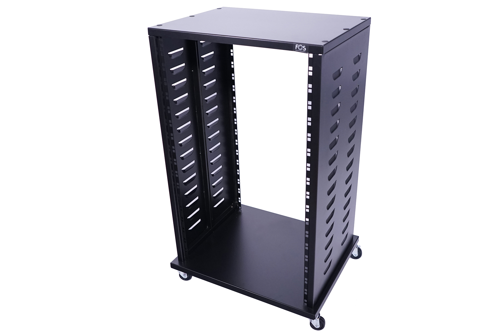 Professional 18U installation Rack, 19″ format, robust steel design, Installation depth: 40 cm, base size 56x46cm, top size 53,5×40,5cm, Includes heavy duty brackets on both sides of the middle guide rails of the inner walls,4 Stable casters, installation height 83.3cm