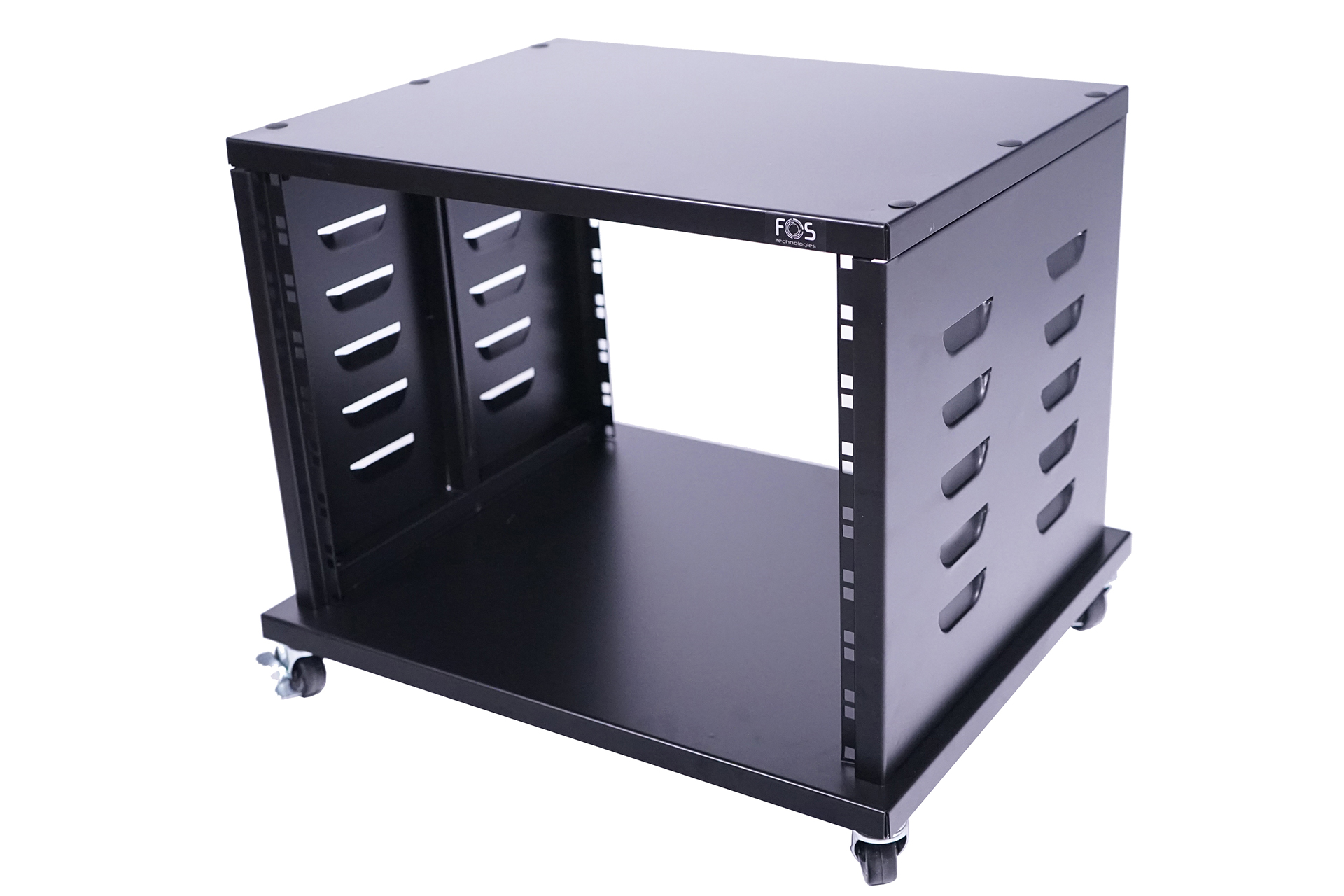 Professional 8U installation Rack, 19″ format, robust steel design, Installation depth: 40 cm, base size 56x46cm, top size 53,5×40,5cm, Includes heavy duty brackets on both sides of the middle guide rails of the inner walls,4 Stable casters, installation height 39.7cm