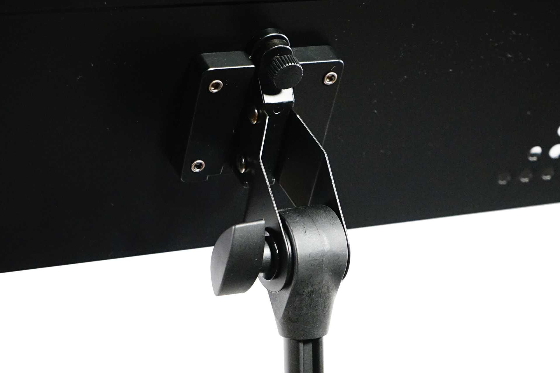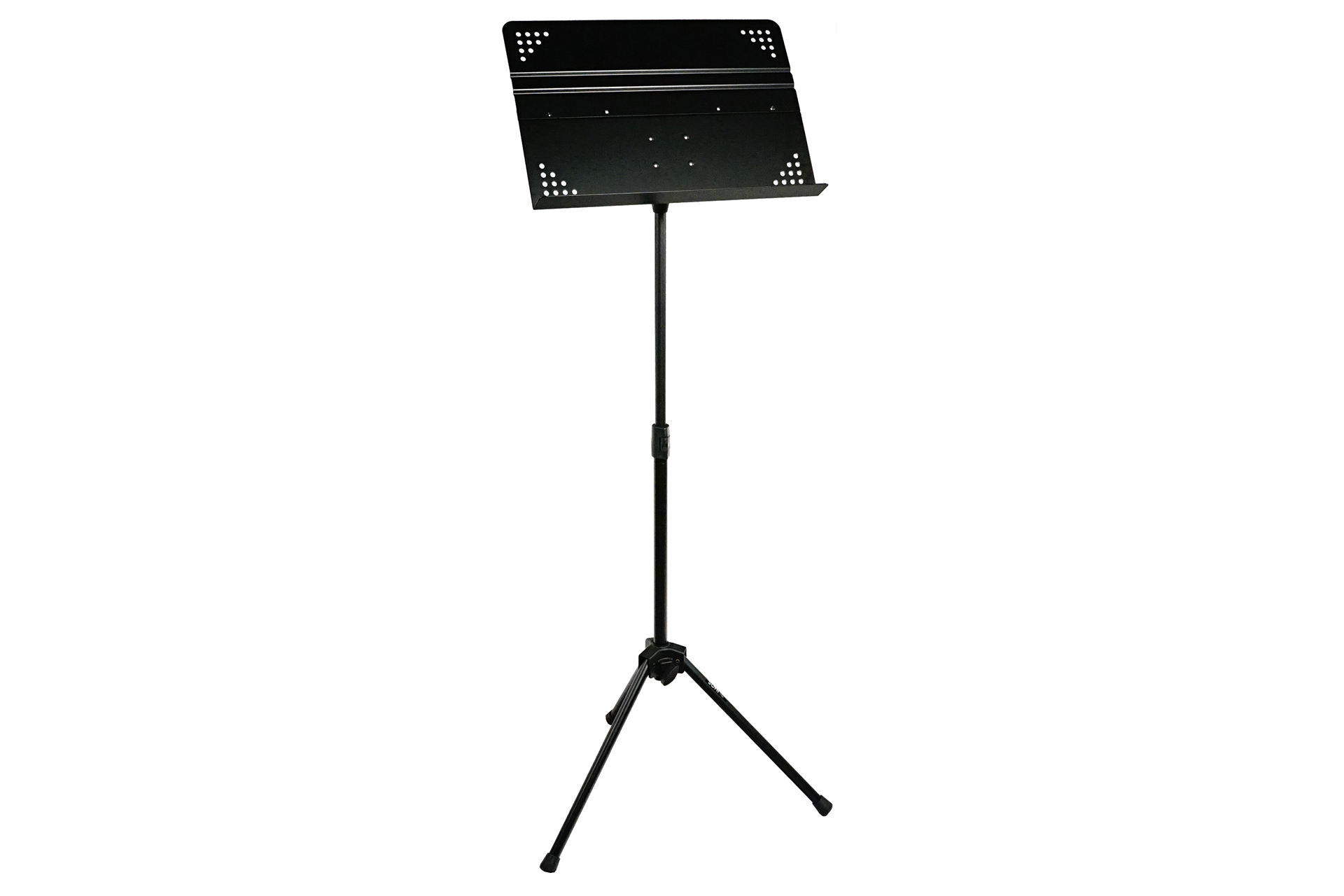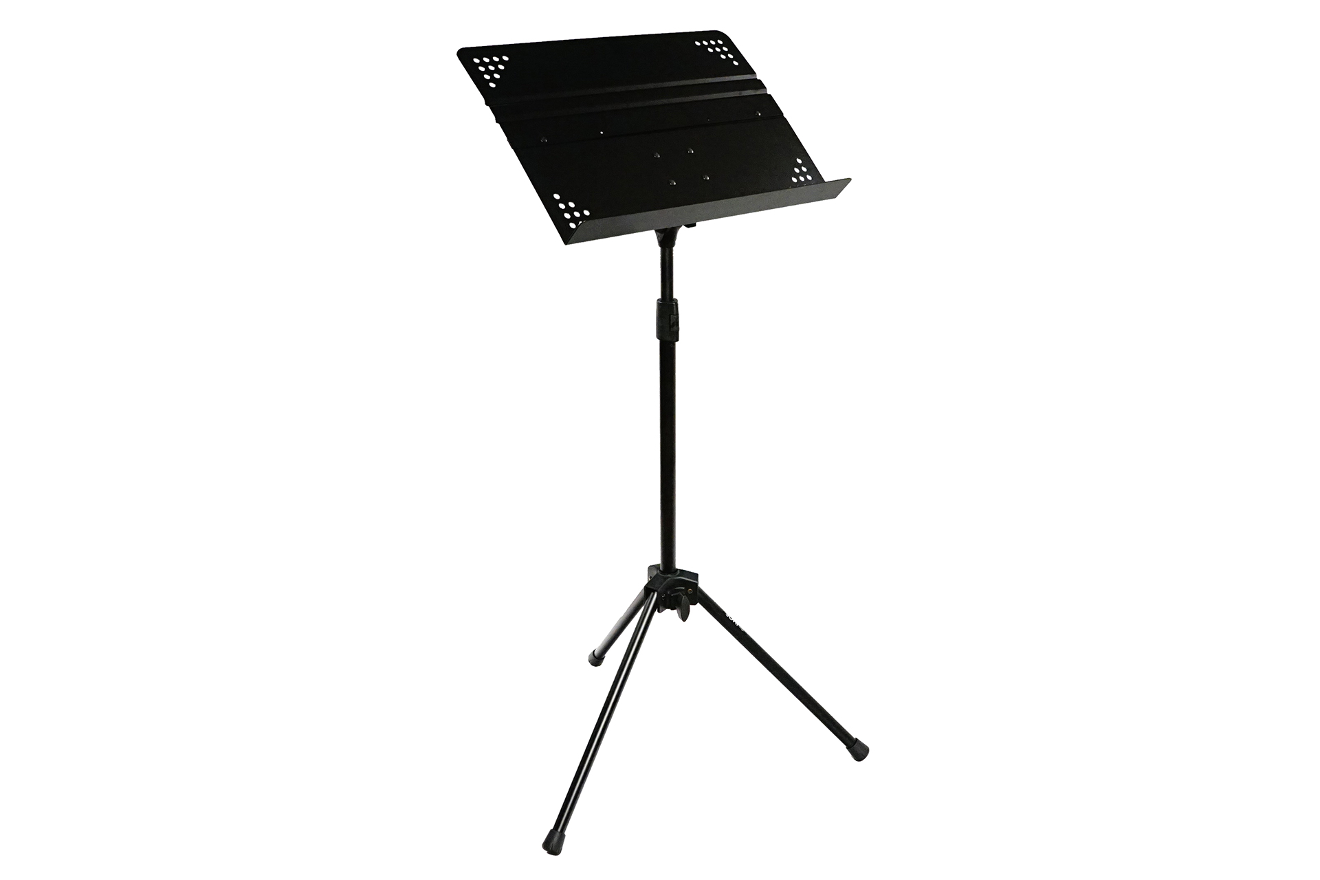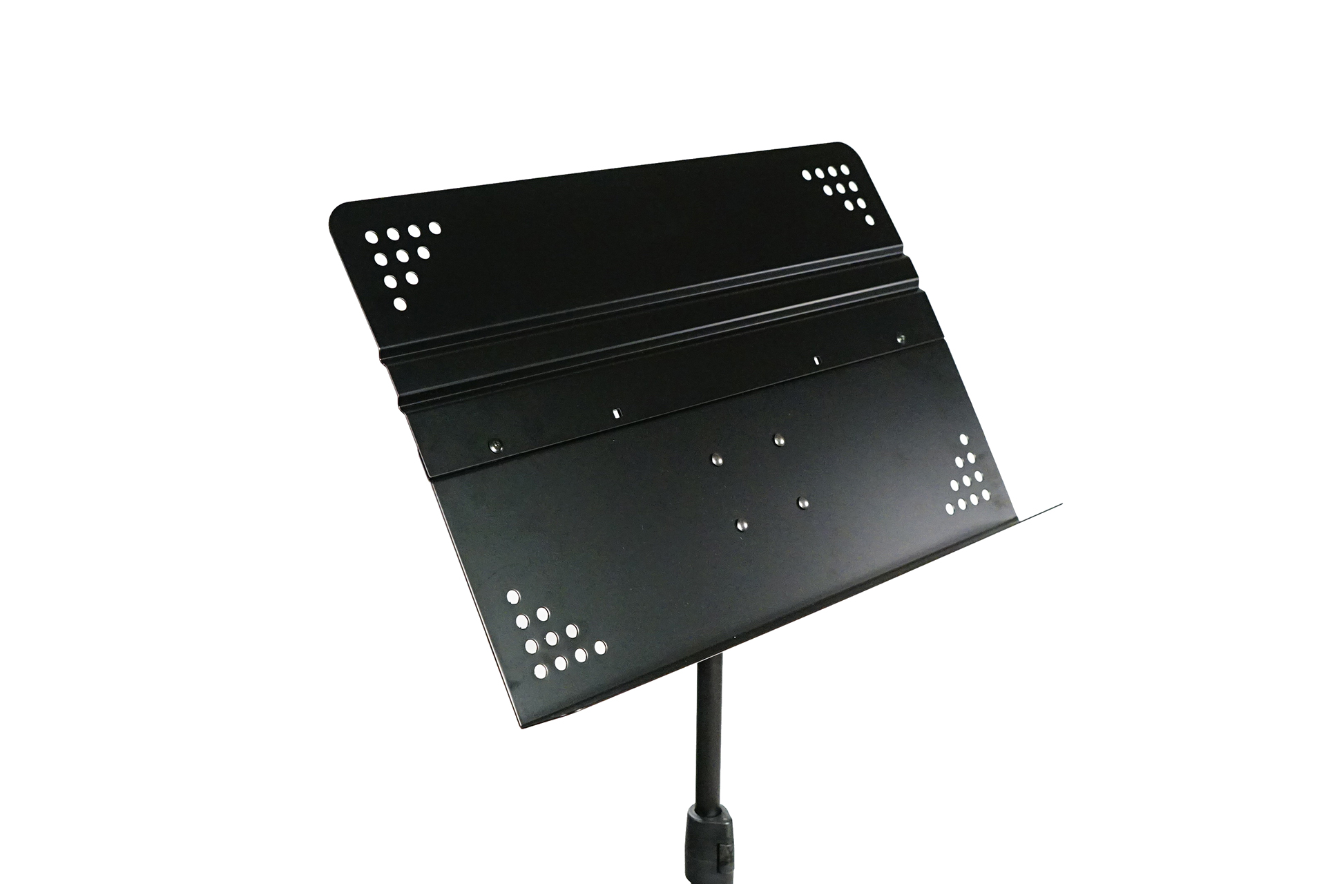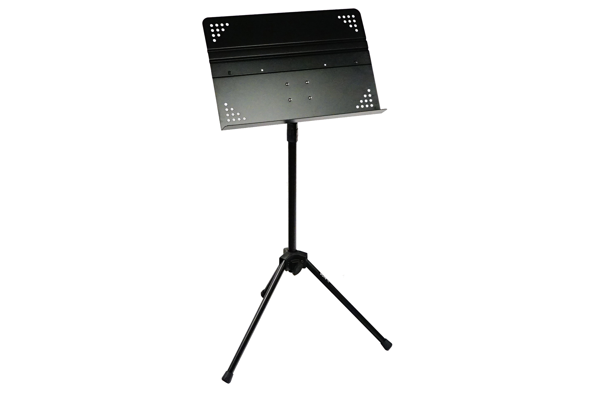 Aluminium music stand, long-lasting design, foldable borad for easy carry, board dimensions 48×33.6cm, adjustable height 80-130cm, Non-slip rubber feet, angle-adjustable sheet music platform,tip-resistant tripod base.