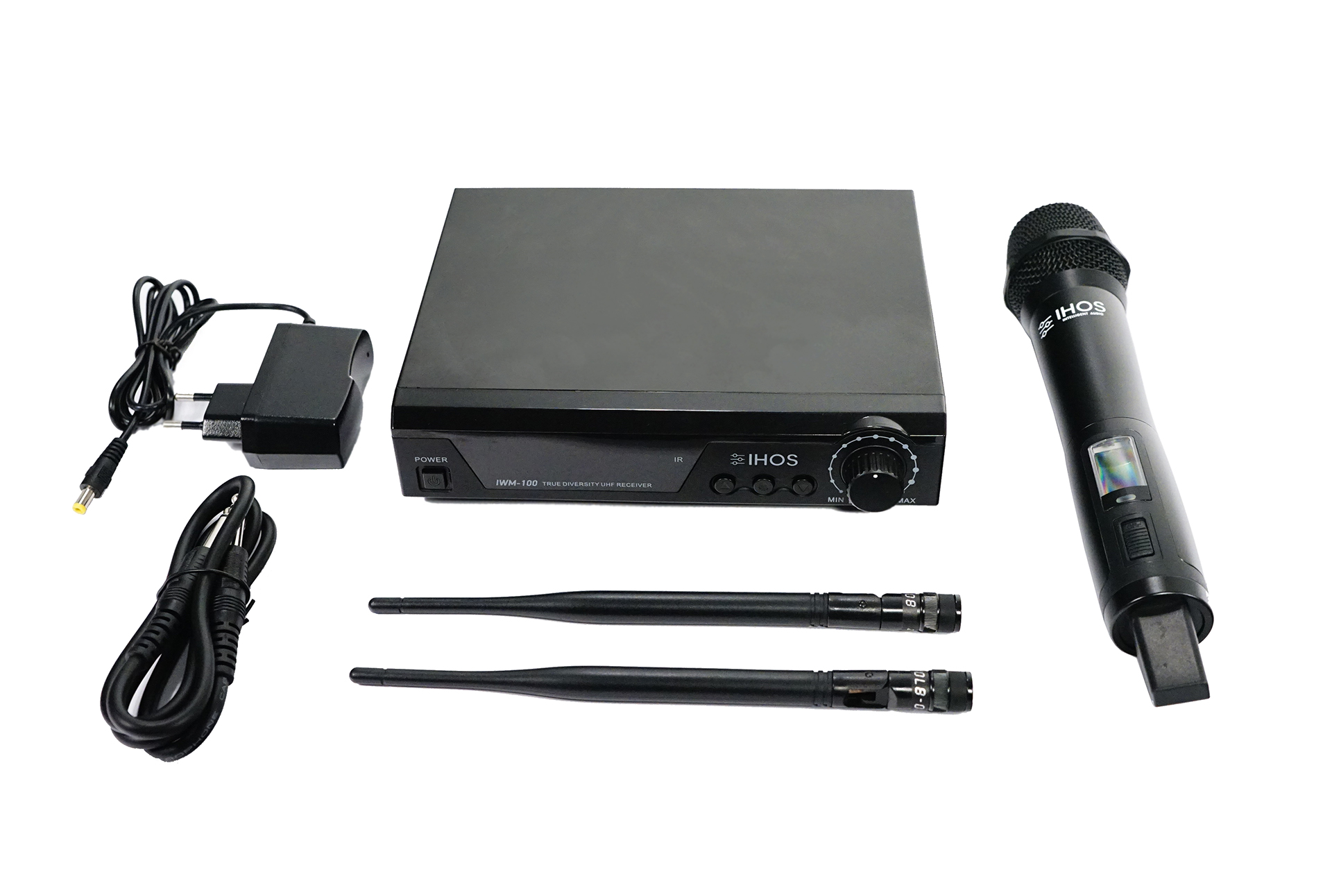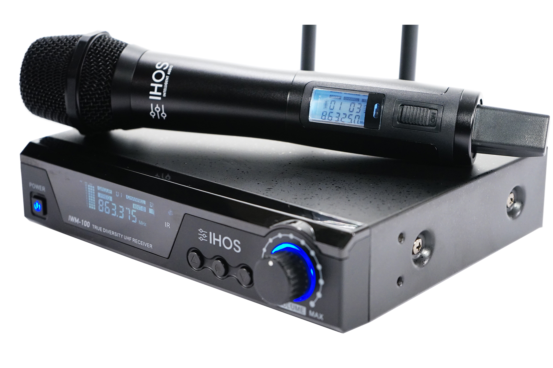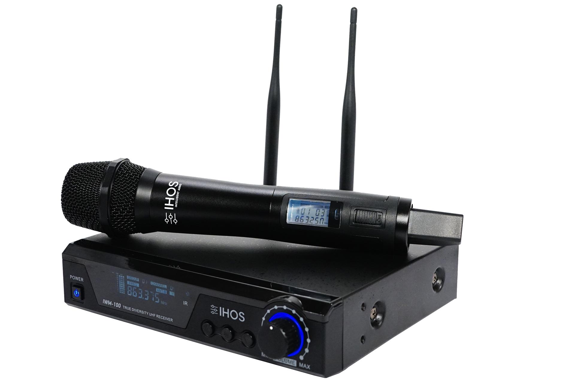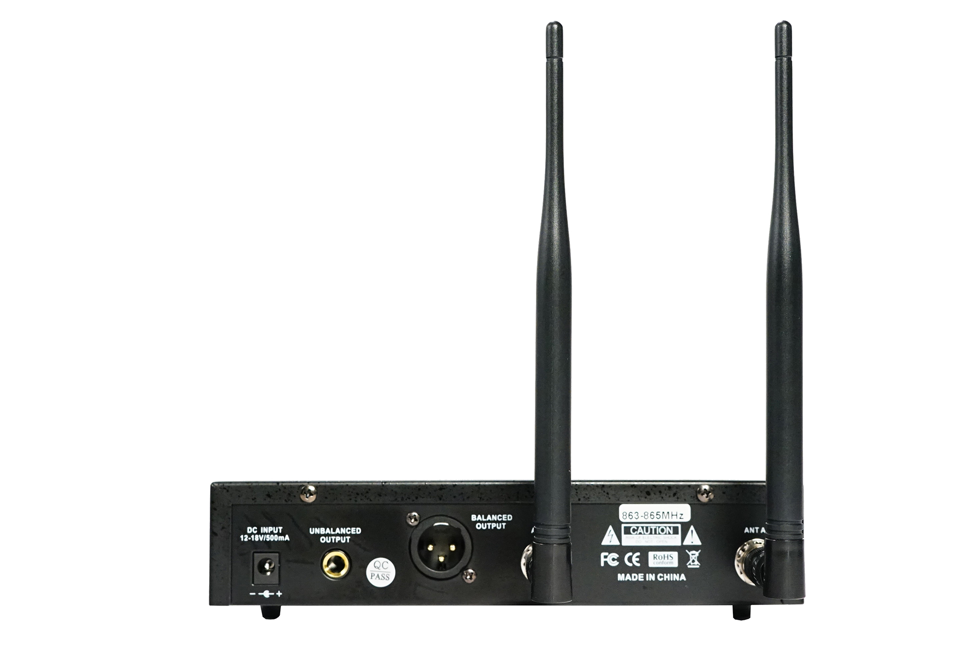 True Diversity UHF Wireless Microphone system, freq. range 863-865MHZ ,PLL Synthesized circuit pre-set, LCD status of frequency, IR sync, LCD display shows status of frequency, AF and RF signa, 150m oprating range, dynamic micr