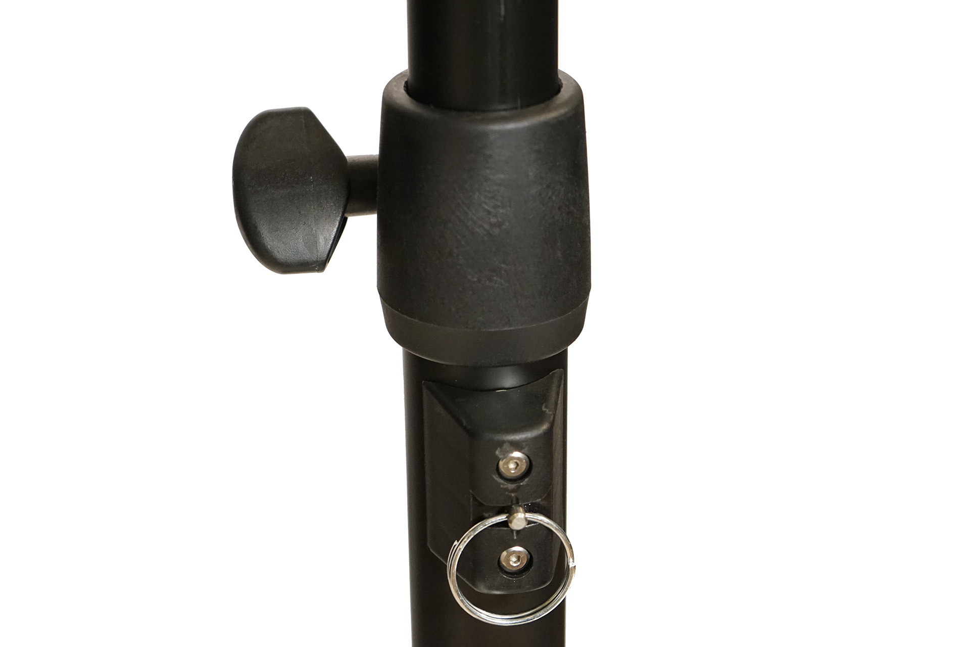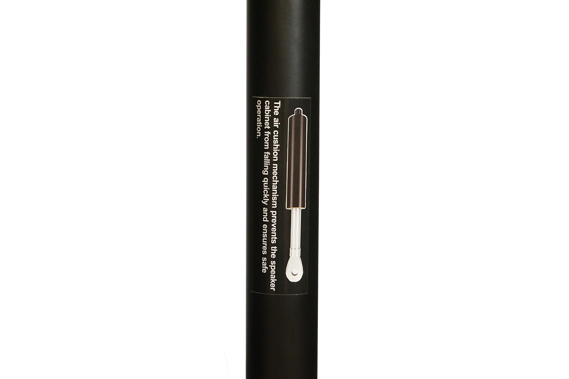 Speaker stand set that includes steel base and pole with air-powered cushion mechanism, self weight 11kg, maximum height 175 cm , for speakers and devices up to 26kg.